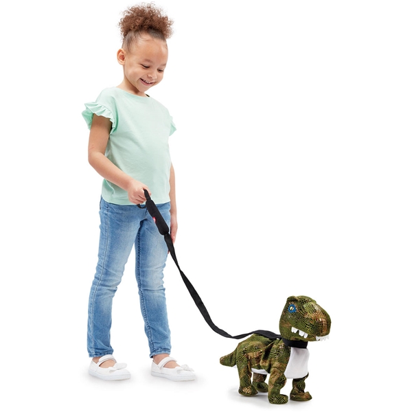 Denne "Dance with Me"-dinosauren elsker å bevege seg og danse til musikk. Gå en tur med ham og se ham danse bort mens han går bort. Bruk fjernkontrollen i båndet for å få ham til å gå fremover, svinge halen og vrikke på kroppen. Hans morsomme låter vil få alle til å danse. Og når dagen er over kan du bruke den fine emballasjen som et mystisk hus for dinosauren.