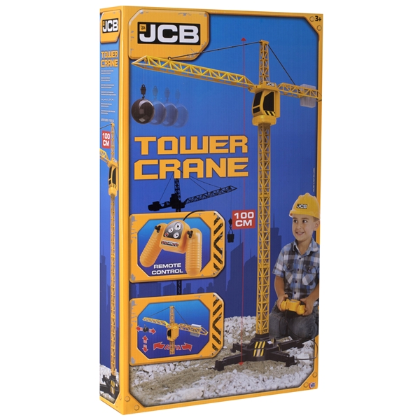 JCB Løftekran 100 cm er en heftig løftekran, som styres ved hjelp av en fjernkontroll. Bruk fjernkontrollen til å svinge kranens arm fra side til side, samt flytte kroken opp og ned. Det medfølger bøtter som kan testes i kroken, og heises opp og ned.