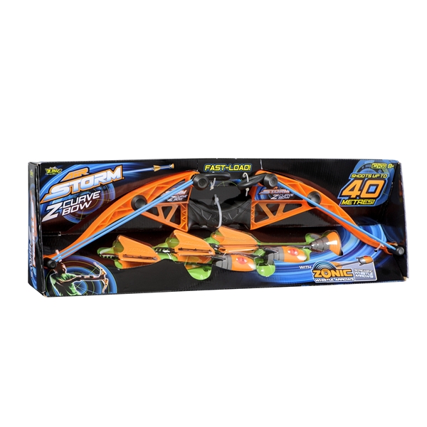 Med Air Storm Z Curve Bow kan du skyte over 125 m!! Den er lett å bruek uansett om du er venstre-eller høyrehent. Dens unike design gjør at kun myk og sikker ammunisjon kan brukes. Inneholdl: 1 stk Z Curve Bow, 2 stk piler med lang rekkevidde og 1 stk Zartz sugekopp pil.