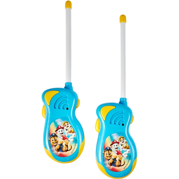 Morsomme, blå walkie talkies med Paw Patrol-trykk. Rekkevidde opptil 50 meter.