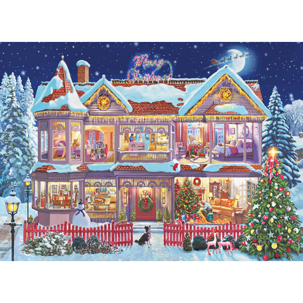 Perfekt for julehelgen, tilbyr en givende utfordring med sine intrikat detaljerte biter, forsterket av Eurographics innovative Smart-Cut-teknologi for en presis og engasjerende puslespillopplevelse. Hver bit avslører scenens rike farger og teksturer. Feir julens ånd når du vekker dette fantastiske kunstverket til live, noe som gjør det til et perfekt midtpunkt for enhver festlig puslespillsamling!
