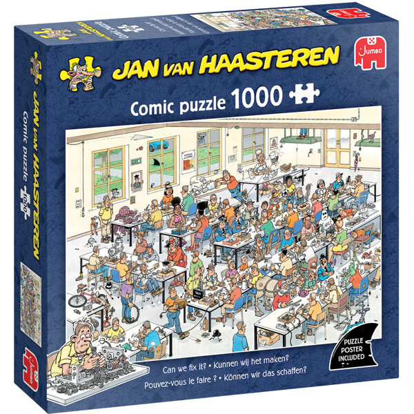 Uansett hvor familien Jan van Haasteren dukker opp, går noe alltid galt. En protese som sprekker i to deler, en hodeløs robot, en ødelagt kjede og til og med en rein som har mistet hornene sine. Det er aldri store katastrofer, men en serie mindre uhell: noen snubler, en annen er opptatt med å fikse noe som bare blir verre. Et uhell her, kaos der, og overalt er det noe å oppdage, og det er nettopp det som skaper uendelig morsomme puslespill og et smil med hver oppdaget scene.