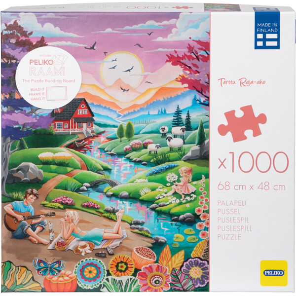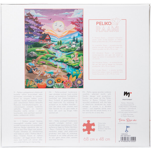 Inneholder puslespillunderlaget Peliko Raami, som gjør det enkelt å bygge og ramme inn bildet i en standardramme på 50 x 70 cm.