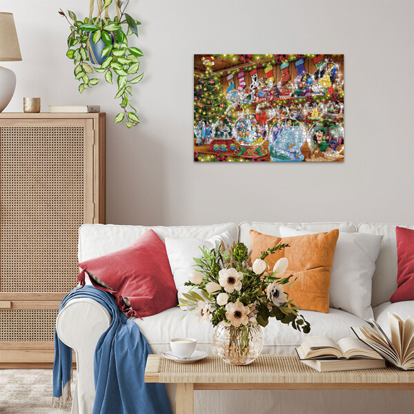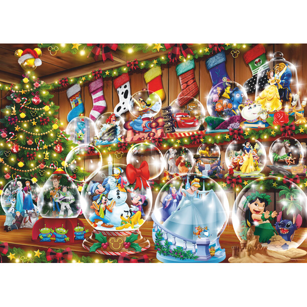 Puslespill 1000 Deler Disney Christmas er et puslespill med julemotiver hvor favorittkarakterer fra Disney vises i fantastiske snøkuler. Denne fantastiske julebutikken har et fantastisk utvalg: Finn Nemo, Beauty & amp; The Beast, Lady og Lufsen, Mikke Mus og mange flere. Et morsomt og festlig puslespill for alle Disney- og Pixar-fans!