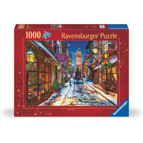 På St George's Toy Shop kan du finne gyngehester, bamser og leketøyssoldater, mens butikken på motsatt side er stedet å gå hvis du leter etter et moderne blikktogsett. En hestevogn har nettopp plukket opp en passasjer fra Queen's Arms Hotel og er på vei mot Big Ben, parlamentet og Themsen. De interessante butikkfrontene, historiske bygningene og den fjerne utsikten over Big Ben gjør dette til et interessant og givende design å puslespill. Slapp av, slapp av og skap noen oppmerksomme øyeblikk når du setter sammen dette atmosfæriske og fargerike puslespillet!