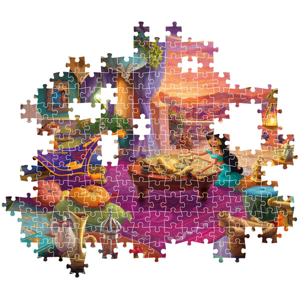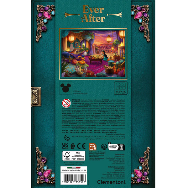 Dette 500-brikkers puslespillet tilbyr en premiumopplevelse med en vakkert kunstnerisk avbildning av Disneys prinsesse Jasmine. Det unike bildet er forsterket med ekstra detaljer og en raffinert design, noe som gjør det til et puslespill som skiller seg ut for alle puslespillentusiaster. Emballasjen har en soft touch-belegg og glansfulle finish på edelstenene, noe som gir en touch av eleganse og gjør det til et perfekt samleobjekt for bokhyllen din.