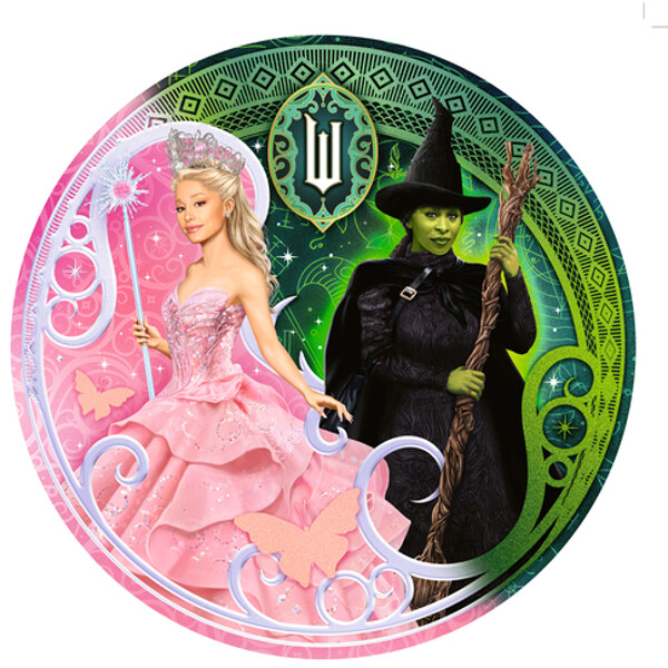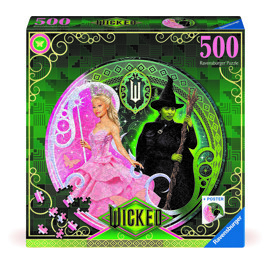 Trå inn i en fortryllende verden med dette fengslende 500-bits runde puslespillet inspirert av den populære Broadway-musikalen "Wicked". Bli med Elphaba og Glinda når de begynner sin ekstraordinære reise fra usannsynlige venner til de ikoniske Wicked Witch of the West og Glinda the Good.
