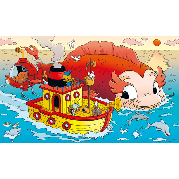 Puslespill 100 Biter Bamse Havets Hemmelighet er et fint pappuslespill med Bamse og vennene hans. Vennene er ute på havet med Victoria og møter en veldig stor fisk.