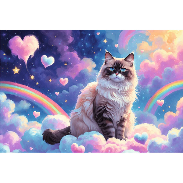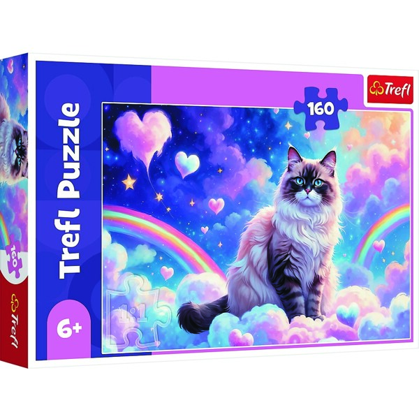 Puslespill 160 Biter Trefl House Cat er et puslespill med 160 biter som vil glede unge dyreelskere. Når puslespillet er montert, skaper det et bilde som forestiller en katt blant fluffy skyer.