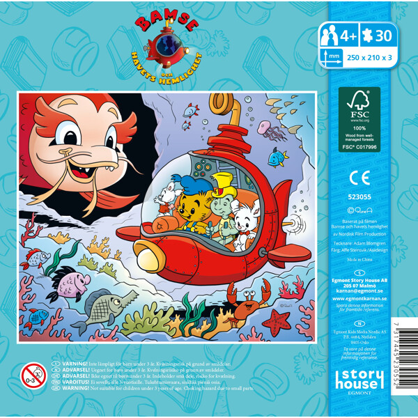 Et 30-brikkers trepuslespill med et motiv fra filmen Bamse og havets hemmelighet.