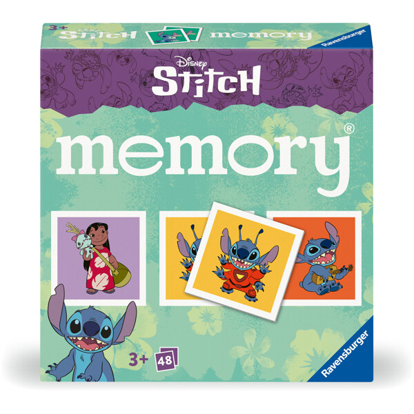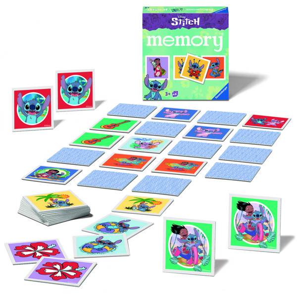 Stitch-fans vil ha mye moro med dette mini memory-spillet, med verdens søteste romvesen og alle hans venner på 24 kortpar.