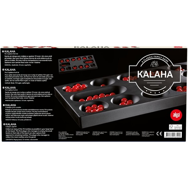 Kalaha er et spill med gamle røtter! Dette utfordrende spillet går ut på å flytte 72 kuler langs brettet, og poenget er å få så mange av dem som mulig til å ende opp i din egen lille bolle. Her er dine taktiske ferdigheter som kreves for å vinne spillet! Kalaha har blitt spilt i mange hundre, om ikke tusenvis, av år i mange ulike deler av verden. Dette gjør Kalaha til et utrolig spennende, utfordrende og klassisk spill i klasse med sjakk!
