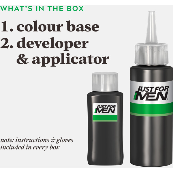 Hårfargingsproduktene fra Just for Men er akkurat hva det høres ut som; hårfarging for menn. Just for Men sikter seg inn på de grå hårstråene og gir et veldig naturlig resultat. Den er rask og enkel å påføre, fargingen tar fem minutter så er du ferdig. Resultatet sitter til håret vokser ut igjen. Du kan bruke sjampo så ofte som du vil og style håret slik du pleier.
