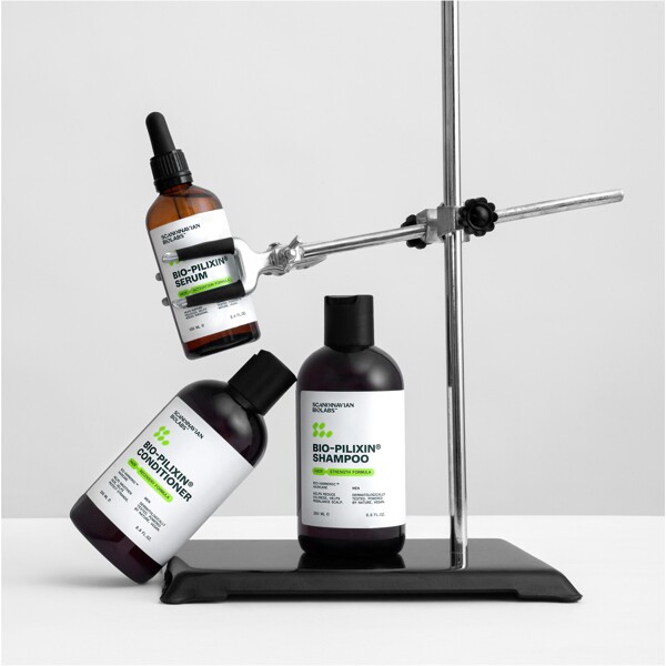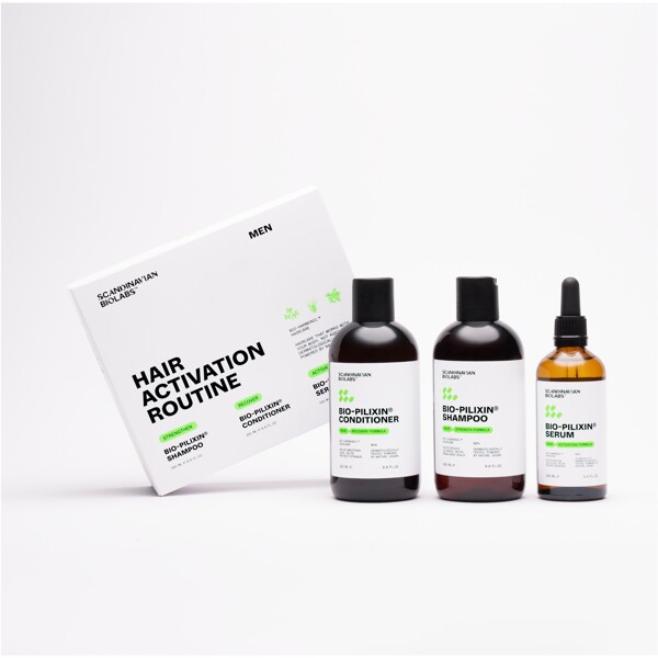 Scandinavian Biolabs 3-trinns rutine er spesielt utviklet for å bidra til å redusere håravfall, støtte hårveksten og hjelpe til med å opprettholde et sunt og sterkt hår. Hver produkt inneholder planteingredienser og noen er utviklet fra stamcelleteknologi, for å pleie hårsekkene og fremme hårvekst.