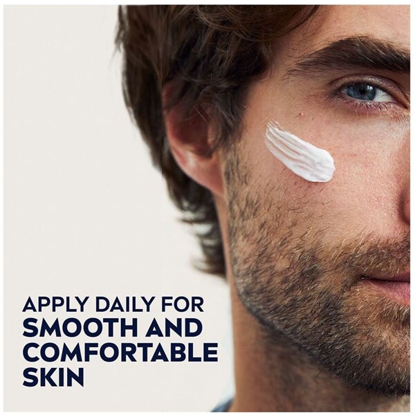 Nivea Men Sensitive Face Moisturiser SPF15 er en ansiktskrem med beroligende formel som lindrer 5 tegn på hudirritasjon: brennende følelse, rødhet, tørrhet, stram hud og kløe. Fuktighetskremen inneholder SPF 15 som beskytter mot UVA- og UVB-stråler.