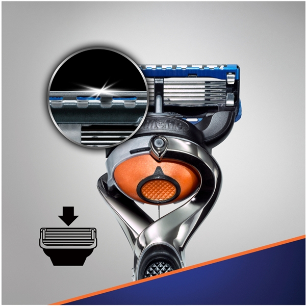 Nye Gillette Fusion ProGlide barberhøvel har fått en ny konstruksjon og design for å gi deg Gillettes mest behagelige barbering. Den har tynnere, finere barberblad med Gillettes mest avanserte overflate som gjør at den glir lett over huden. Dette gir en enda behageligere barbering enn Fusion og en utrolig komfort, selv om du barberer deg hver dag. Med bare øynene kan det være vanskelig å se alle de nyeste innovasjonene på NYA Gillette Fusion ProGlides manuelle respektive batteridrevne barberhøvel, men etter en barbering vil man garantert merke forskjellen. Den nye barberbladstabilisatoren beholder optimal barberbladsplassering for komfort. Det gjør at barberbladene kan justeres til dine ansiktskonturer. - Det omformede ergonomiske håndtaket har ekstra grep. De riflede kanalene på håndtaket gjør at vannet rinner av og vil dermed gi bedre kontroll under våte forhold. - Den forbedrede Lubrastrip er nå større enn Fusions og den forbedrede formulaen, med mineralolje og smørende polymer gjør det enkelt for barberhøvelen å gli lett over huden.- Den omformede presisjonstrimmeren har et forbedret barberblad slik at det blir lettere å nå vanskelige områder. - Snowplough komfortbeskyttelse fjerner gjenværende barberprodukter for å beholde en nære, behagelig barbering.