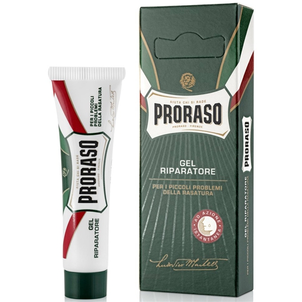Ta en liten mengde Proraso Styptic Gel og påfør. La det virke i noen minutter før du skyller med kaldt vann.