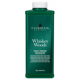 Clubman Pinaud Reserve Cornstarch Finest Powder har den friske duften av Whiskey Woods, en mesterlig blanding av tobakkblad, bergamott, whisky og tretoner.