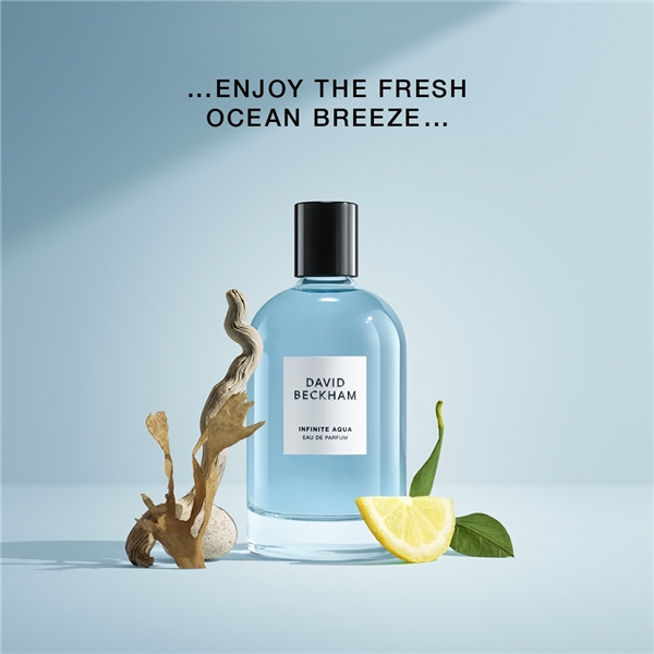 Infinite Aqua er en frisk duft - som en ferie ved havet. Infinite Aqua er en aromatisk duft med et marint preg, som er inspirert av reisen langs Californias Pacific Coast Highway, bølgene i Stillehavet og følelsen av salt sjøluft mot huden. Grønne toner av sitrus og fiken blander seg med dufter fra havet og skaper en frisk duftbølge. Hjertenotens rene og luftige toner av lavendel og vannlilje gir duften en maskulin aura. Hjertenoten glir inn i en forlokkende basisnote av tre og mose med myke innslag av sedertre og sandeltre. Infinite Aqua er en hyllest til havets friske natur og gir en intens følelse av uendelighet og styrke.