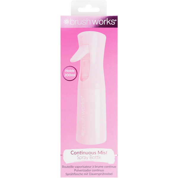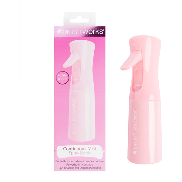 Brushworks Continuous Mist Spray Bottle er en praktisk sprayflaske for hårstyling som gir en jevn og fin mist. Den er perfekt for å fukte håret, style frisyrer eller friske opp håret mellom vaskene. Den kontinuerlige sprayfunksjonen gjør at vannet fordeles jevnt over håret, noe som gir et mer profesjonelt resultat ved styling.