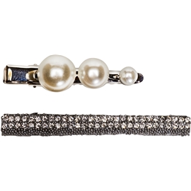 Hair Clips Bling Set er et matchende sett med sølvfargede hårspenner av metall og glitrende steiner og perler.
