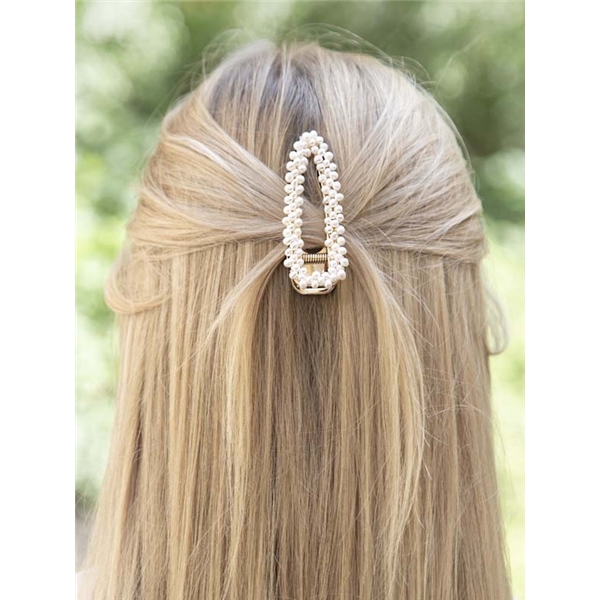 PEARLS FOR GIRLS Happy Pearl Clip er et klassisk hårspenne med Mother of Pearls. Metallet på hårspennen er gullbelagt og låsen er 8 cm lang.