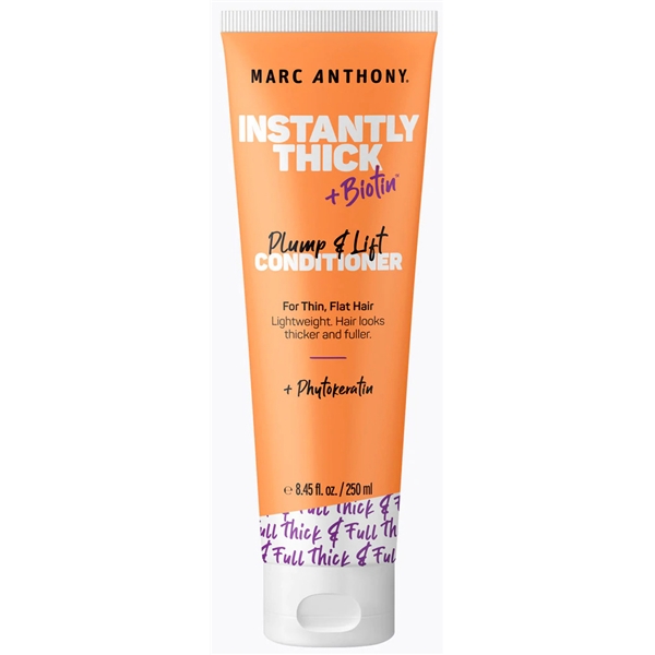 Instantly Thick Plump & Lift Conditioner fra Marc Anthony er en ultralett balsam for tynt, flatt, fint hår som forvandler det til sterkere, tykkere hår. En blanding av biotin, fortykkende polymerer og fytokeratin gir styrke, plumphet og fuktighet når du bruker denne balsamen. Mens aloe, solsikkeolje og vitamin E gir glans, forbedrer og styrker hårets tilstand. Fingrene dine vil gli gjennom det tykkere og fyldigere håret med den ultimate letthet.