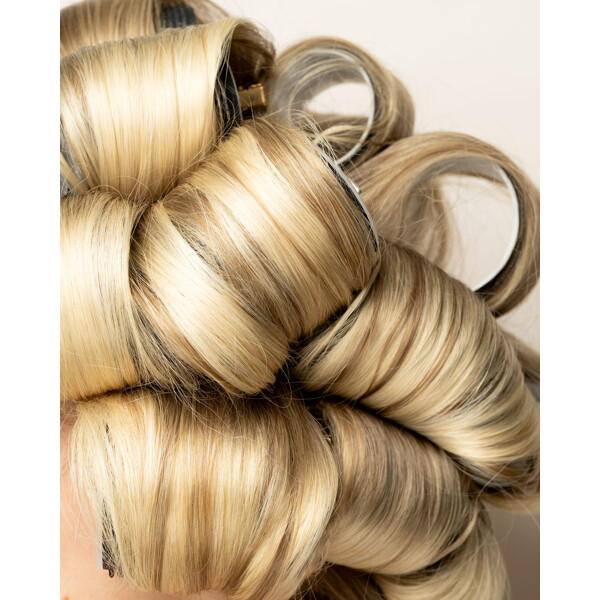 •  Når håret fortsatt er varmt, ta en hårsling og plasser rullen ved tuppene. Rull deretter innover mot hodebunnen og sørg for at håret sitter tett rundt rullen.