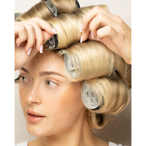 •  For best resultat – føn håret tørt før du begynner å style, eller bruk krølltang. Du kan også varme opp rullene raskt med hårføneren.
