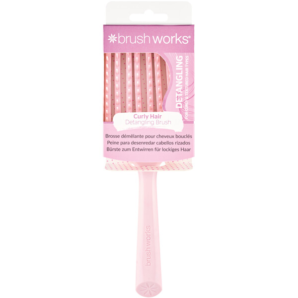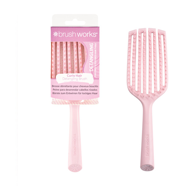Brushworks Curly Hair Detangling Brush er en spesialdesignet hårbørste for krøllete hår som gjør det enkelt å gre ut floker uten å skade eller ødelegge krøllenes naturlige form. Børsten glir skånsomt gjennom håret og hjelper til med å definere krøller samtidig som den reduserer slitasje og frizz.