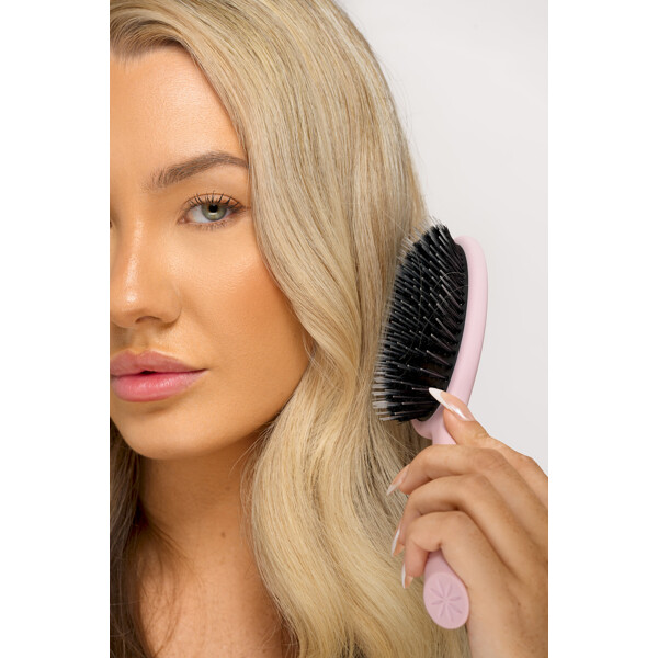 Børsten gir dessuten en behagelig massasje av hodebunnen, noe som kan stimulere blodsirkulasjonen og bidra til en sunnere hodebunn. Samtidig hjelper børstehårene til med å fordele hårets naturlige oljer, noe som fremhever hårets naturlige glans.