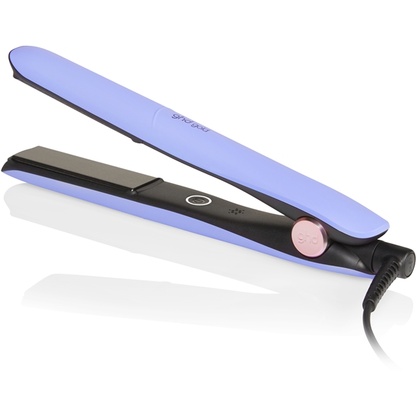 Oppdag den gyldne standarden innen varmestyling med vår ghd gold® styler i en uimotståelig, frisk lys lilla i et begrenset opplag med myk rosa metallaksenter. Med tosoneteknologi og to neste generasjons varmesensorer for å opprettholde en jevn varmefordeling over begge stylingplatene. Den optimale stylingtemperaturen på 185ºC opprettholdes nøye for å gi glattere, glattere og sunnere hår*.