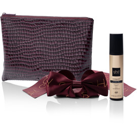 I denne kirsebærfargede toalettvesken finner du ghd Bodyguard – varmebeskyttelsesspray for alle hårtyper, din premiumbeskyttelse ved varmestyling. Denne lette misten er spesielt utviklet for alle hårtyper og skaper en usynlig beskyttelse mot daglige varmeskader og gir glatt, glansfullt og beskyttet hår ved hver styling. Sett prikken over i-en på din festlook med ghd-hårklemmen i begrenset utgave, prydet med en satengsløyfe – den perfekte avslutningsdetaljen for din look.