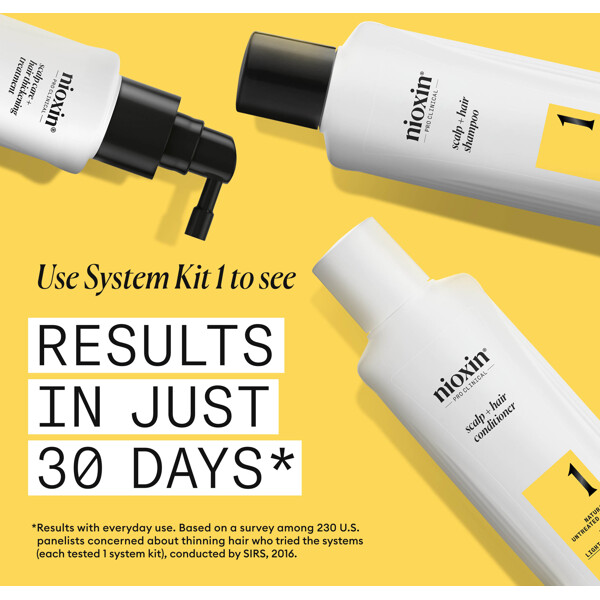 Nioxin er en serie som er utviklet for å gjøre håret tykkere og tettere. Tynt hår er i dag et utbredt problem som rammer mange. De fleste tilgjengelige løsningene er basert på medisinsk behandling eller på å skjule det tynne håret. Nioxins tilnærming er annerledes fordi den ikke sikter på å kamuflere skalletheten. Denne innovative teknologien gir i stedet hår som ser tykkere og tettere ut uten bieffekter. Nioxin har hentet inspirasjon fra hudpleie for å tilby en avansert behandling for tynt hår. Hodebunnen bør ses som en forlengelse av ansiktshuden og krever samme omsorg og pleie. Nioxin har utviklet en serie produkter som skal styrke, gi næring og reparere håret fra bunnen av. Siden en frisk hodebunn er en forutsetning for sunt hår, gjør disse produktene at håret ditt ser tykkere og tettere ut.Produktene er markedsledende blant frisører i USA når det gjelder behandling av tynt hår.Nioxin er rangert som det mest effektive merket mot tynt hår av 75% av USAs frisører.Vinner av Stylist Choice Award 11 år på rad for "beste produkt mot fortynning av hår".System 1 Scalp Treatment er en leave-in behandling for normalt til tynt hår som skaper volum. Behandlingen er beriket med antioksidanter og botaniske stoffer som bidrar til å skape et sunt miljø og gir en frisk følelse i hodebunnen.TIPS: For optimalt resultat kombineres produktet med System 1 Cleanser og Scalp Revitaliser.