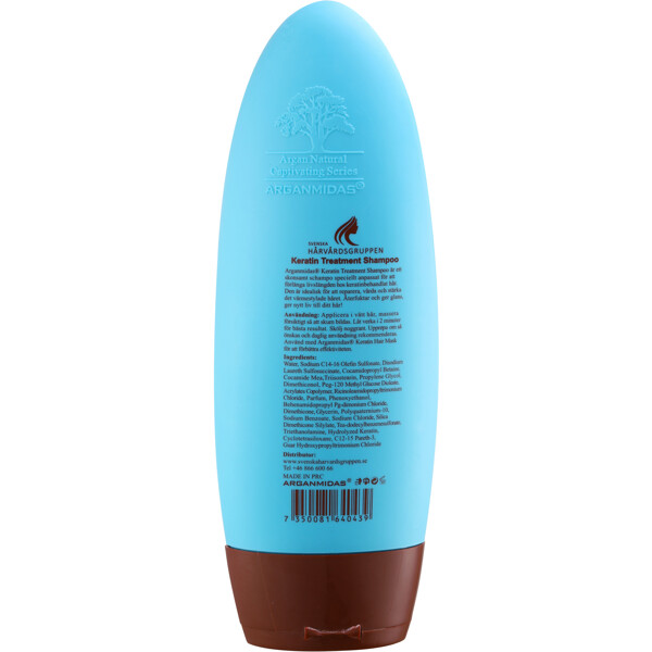 Arganmidas Keratin Treatment Shampoo er en skånsom sjampo spesielt tilpasset for å øke levetiden til keratinbehandlet hår. Den reparerer, styrker og nærer flatt eller varmebehandlet hår.