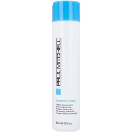 Clarifying Shampoo Three er en sjampo som fjerner rester av klor, jern og andre mineraler. Det er perfekt for deg som bruker mye tid i en svømmehall. Det dyprengjørende sjampoen vasker bort urenheter og opprettholder lengdene sterke. Shampoo Three er fritt fra gluten og er vegansk. Ikke bruk sjampoen i et farget hår.