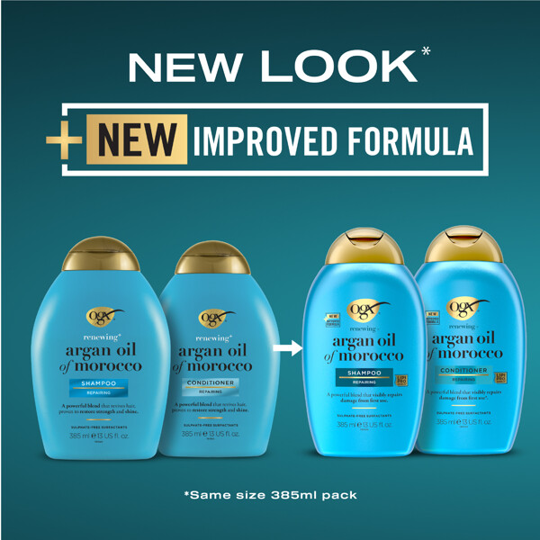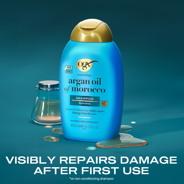 Argan Oil Shampoo fra OGX er en edel kombinasjon av arganoljer som gjenoppbygger og styrker håret, til silkeglatt perfeksjon. Den beskytter også håret ved varmestyling og fra UV-skader.