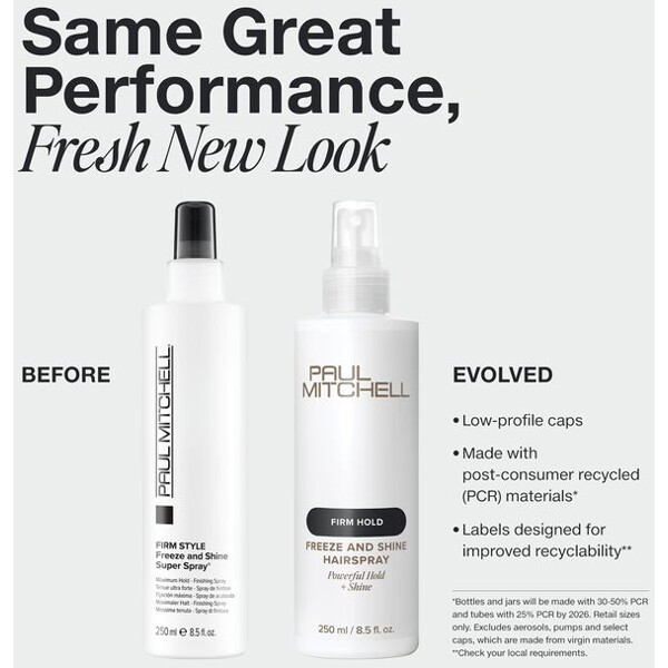 Firm Style Freeze & Shine Spray gir håret en kraftig holdbarhet og med minne som gjør at frisyren holder hele dagen. Hårsprayen gir håret en maksimal styrke og glans. Sprayen er perfekt å bruke ved oppsetninger, i et medium til tykt hår. Hårsprayen er fri fra parabener, gluten, den er vegansk og fargebevarende samt inneholder UV-beskyttelse.