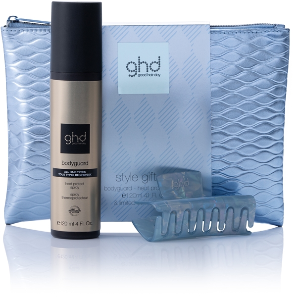 Settet inneholder ghd bodyguard heat protect spray – for alle hårtyper, som gir en usynlig barriere mot daglige varmeskader.