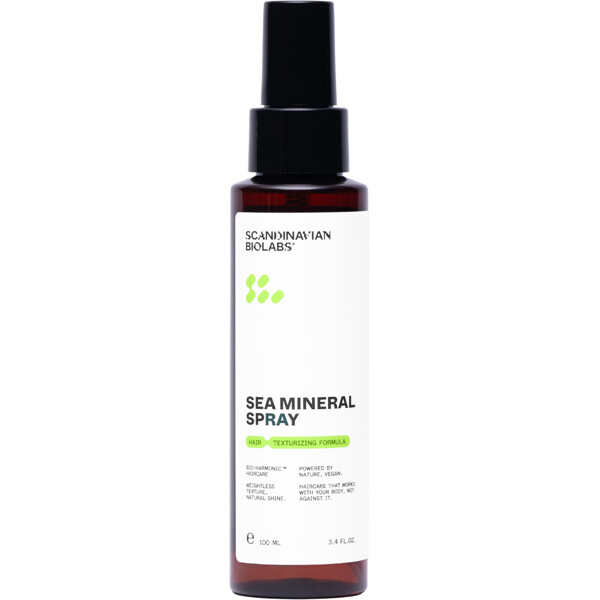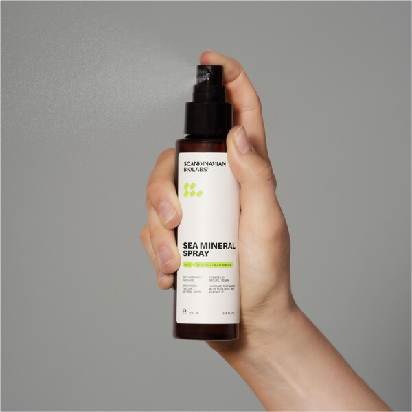 Sea Mineral Spray fra Scandinavian Biolabs gir håret en avslappet, saltvannsaktig følelse med myke bølger, naturlig struktur og lett hold. Perfekt for deg som vil skape en beach look med volum og bevegelse – uten at håret føles tørt, stritt eller klissete.