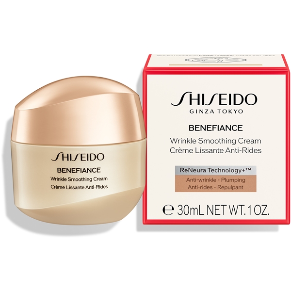 Benefiance Wrinkle Smoothing Cream fra Shiseido er en 24 timers krem som gir huden en omstart. For normal til kombinert hud. Den fremmer raskere hudens medfødte kraft å: 1: Reparere sin indre evne for å generere celler som er fylt med hyaluronsyre 2: Nå strukturskader på vært nivå i huden for å forhindre ytterligere rynker og motvirke de som allerede finnes. Inneholder ReNeura Technology+ TM, KOMBU-Bounce Complex og WrinkleResist25 Technology. For en fastere, silkemyk, gjenfuktet og energifylt hud.