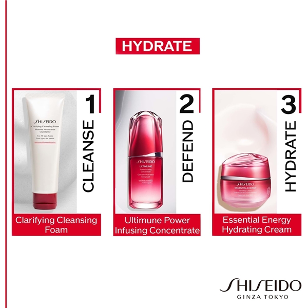 Shiseido Essential Energy Hydrating Day Cream Broad Spectrum SPF 20 med en forbedret formel som fukter i 24 timer. En luftig, myk fuktighetskrem som gir en sunn, glødende og dypt fuktet hud. Inneholder SPF 20 og HyaluronAcidRED-teknologi som aktiverer hudens evne til å produsere en mer holdbar, langvarig og tre ganger dypere fuktighetsgivende. *