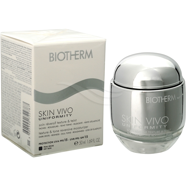 Skin Vivo Uniformity Cream- Dry skin er en deilig og kremet antirynkekrem fra Biotherm som passer tørr hud. Kremen inneholder fem aktive ingredienser som øker cellefornyelsen og gir en fastere hud med glans. Skin Vivo Uniformity Cream – dry skin er en antirynkekrem med dokumentert effekt og synlige resultat! 74% kvinner kunne kjenne en reduksjon av pigmentering og rødhet. 90% av dem opplevde en forbedring av hudens utstråling og klarhet. 82% fikk glattere hud og kjente at huden var fastere.