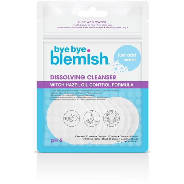 Bye Bye Blemish Dissolving Cleanser Sheets er vannløselige renseputer som kontrollerer overflødig talg og gir næring til huden.