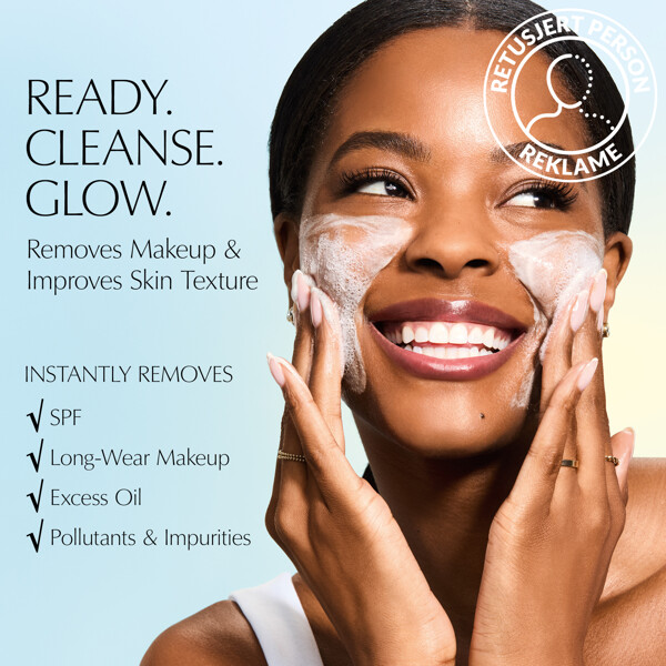 Den innovative gelé-teksturen forvandles til et silkemykt skum ved kontakt med vann og gir en dyprensende opplevelse som effektivt fjerner urenheter, langvarig sminke, solbeskyttelse og forurensninger fra huden. Etter hver bruk føles huden frisk, myk og fornyet med en glød som varer hele dagen.