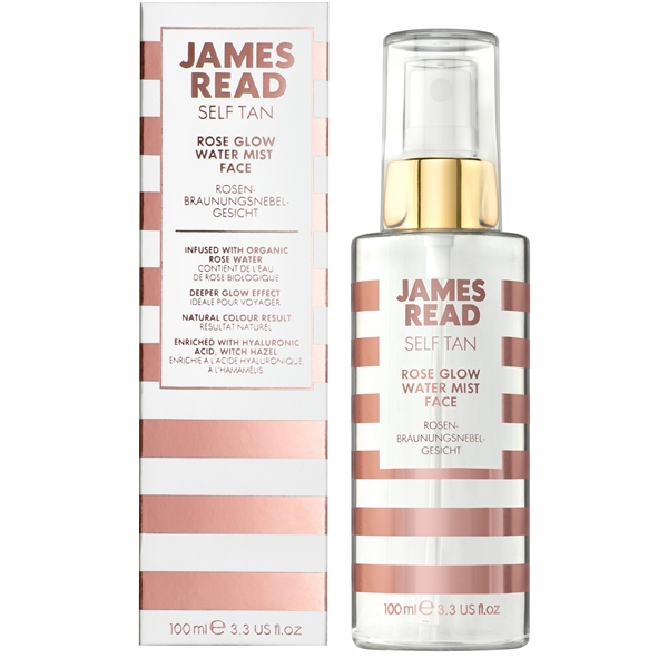 James Read Rose Glow Tan Mist Face inneholder organisk rosevann som motvirker synlige aldringstegn, mens vitaminer og mineraler gir hudens fuktighetssystem en forfriskende boost. Du bruker misten daglig til du oppnår ønsket farge, og deretter 2-3 ganger i uken for å opprettholde din solkysste glød. Du kan spraye misten på bar hud, men den fungerer også perfekt som en fuktighetsgivende setting spray på toppen av makeup.