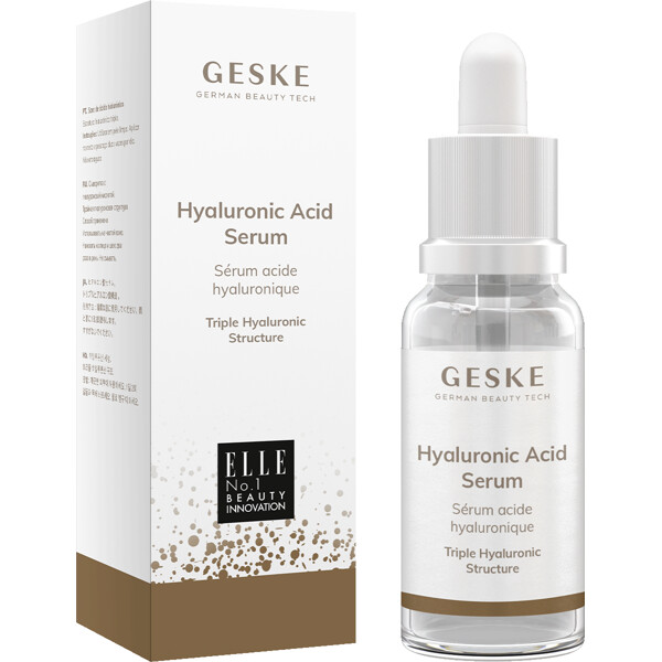 Serum med hyaluronsyre er den perfekte følgesvennen til GESKEs anti-aging- og hudoppstrammingsenheter, og når den brukes i kombinasjon, får huden din en vakker glød og en rik mykhet. Serumet har spesielt fuktighetsgivende egenskaper på tørr hud takket være sin trippel-hyaluronstruktur, som er et lavmolekylært stoff som gjør at det trenger svært dypt inn i huden.