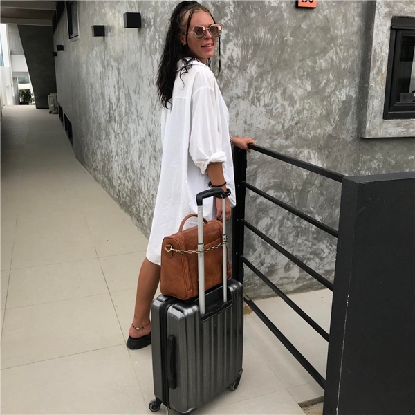 Den står fast inne i en avtagbar plate. Baksiden av Diamond har et åpent rom med magnetlås og en avtagbar kjede som er perfekt for å feste til håndtaket på en koffert. Skulderremmen er justerbar og avtagbar.