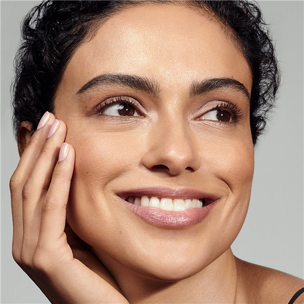 Den lette teksturen med full dekning jevner umiddelbart ut hudtonen, dekker rødhet, mørke flekker og ujevnheter i huden. Redder huden med lindrende fuktighet som fyller ut huden. Det er en makeup som ser naturlig ut og lyser opp huden med en umiddelbart strålende glød som varer i 12 timer.