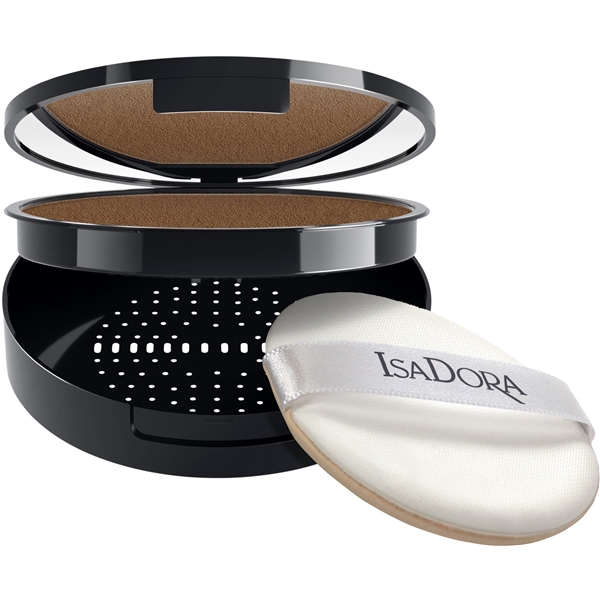 IsaDoras unike kompakte foundation er et viktig supplement til sminkesamlingen din, med et innebygd speil og applikator, som gjør den ideell å bære. p >